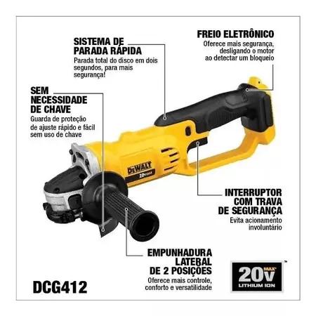 Esmerilhadeira a bateria de íons de lítio 20V, com empunhadura frontal